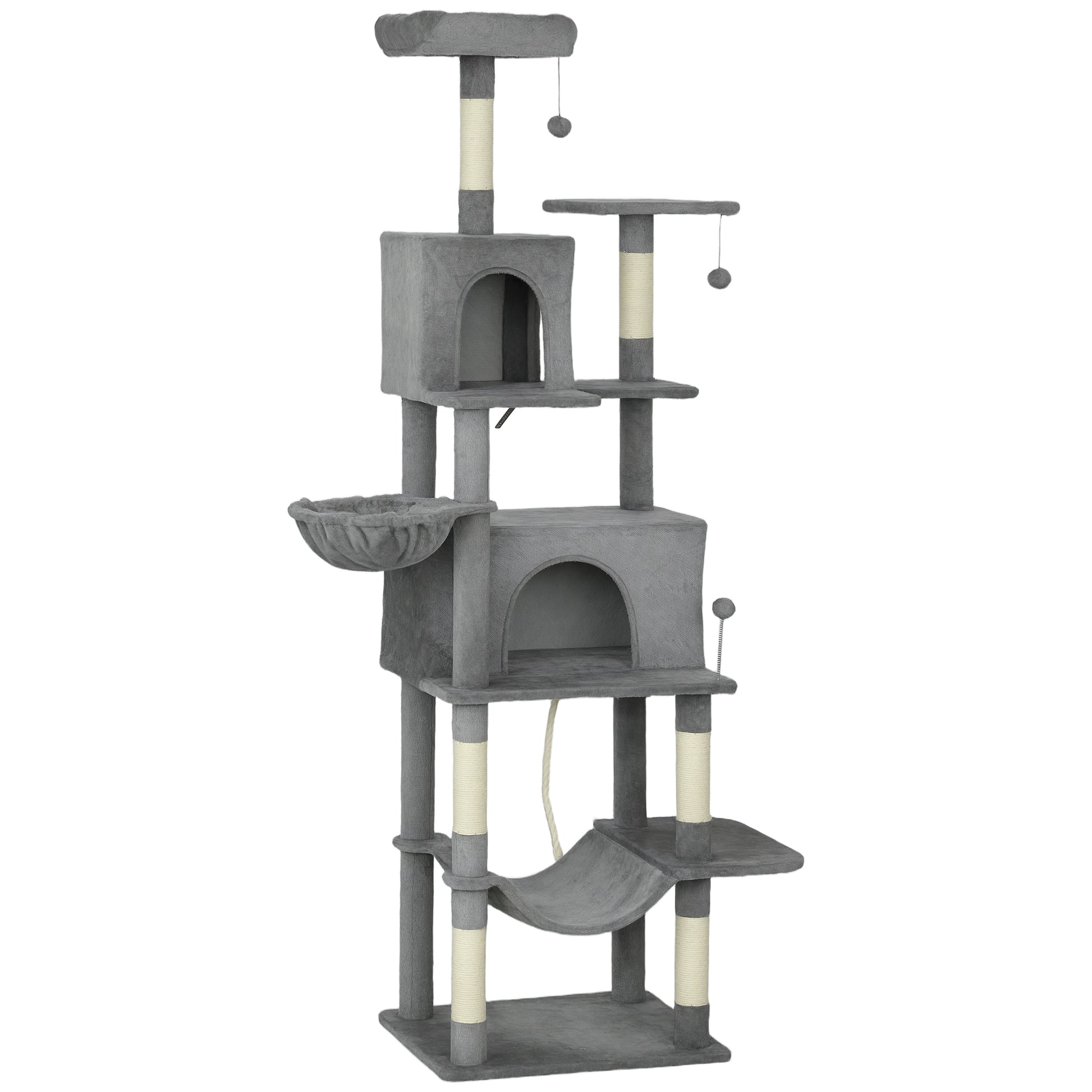Multi-Level Cat Tower, 80" Tall Cat Tree, with 2 Condos, 2 Hammocks, 6 Sisal Scratching Posts, Dark Gray